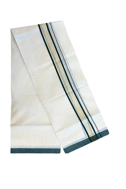 20% DISCOUNT! KaithariKada Balaramapuram Double OFF WHITE Mundu/Dhoti - 80x90 - 1.75 Inch Tissue Dark Green striped Kara - 4KK5182VAS