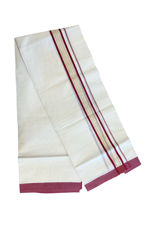 20% DISCOUNT! KaithariKada Balaramapuram Double OFF WHITE Mundu/Dhoti - 80x90 - 1.75 Inch Tissue Maroon striped Kara - 5KK5182VAS