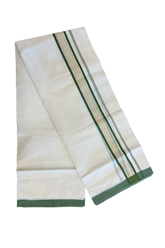 20% DISCOUNT! KaithariKada Balaramapuram Double OFF WHITE Mundu/Dhoti - 80x90 - 1.75 Inch Tissue Jungle Green striped Kara - 8KK5182VAS
