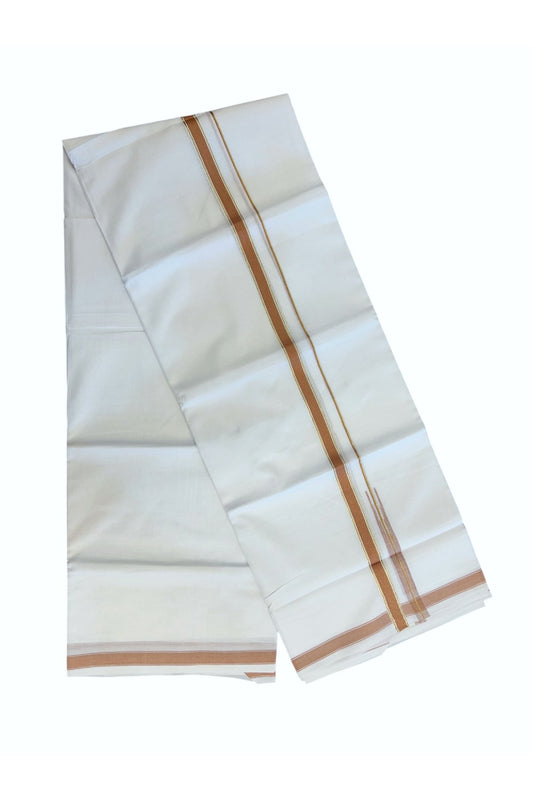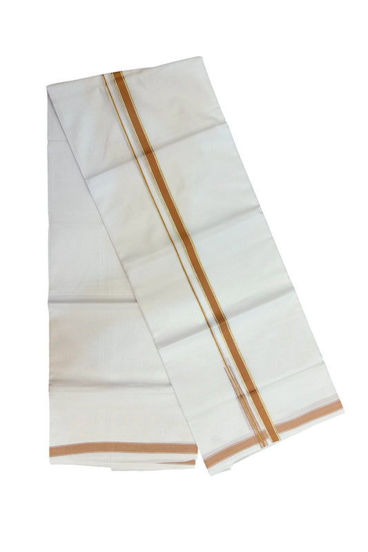 20% DISCOUNT!! Kaitharikada Balaramapuram 100% Cotton PURE WHITE Double Mundu/Dothi - 80X90 - 1.5 Inch Golden Brown design Kara 3.70 m (8 Muzham) - 56KK5115THI