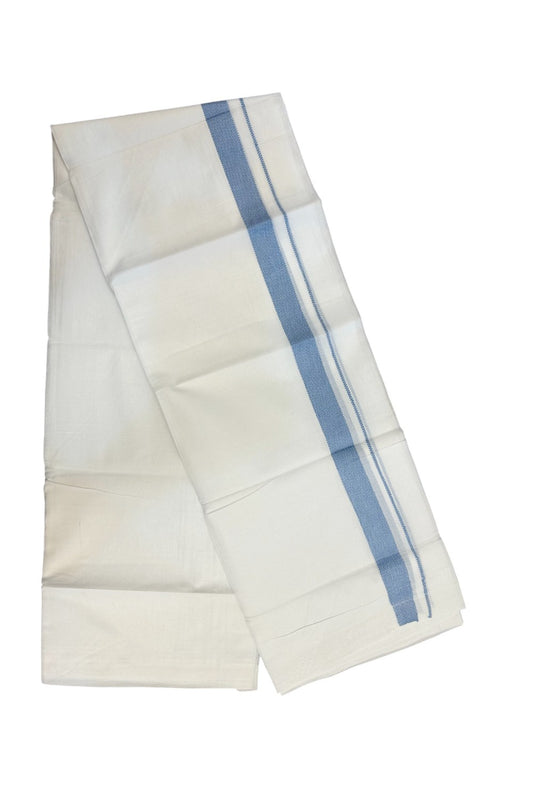 20% DISCOUNT!! KaithariKada Balaramapuram 100% Cotton PURE WHITE DOUBLE Mundu/Dhoti - 100x80 - 1 inch Sky Blue Design Kara - 20KK5174THI