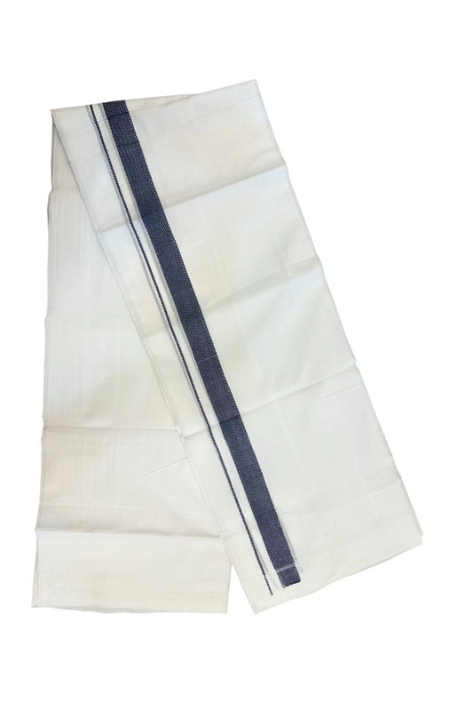 20% DISCOUNT!! KaithariKada Balaramapuram 100% Cotton PURE WHITE DOUBLE Mundu/Dhoti - 100x80 - 1 inch Navy Blue Design Kara - 22KK5174THI