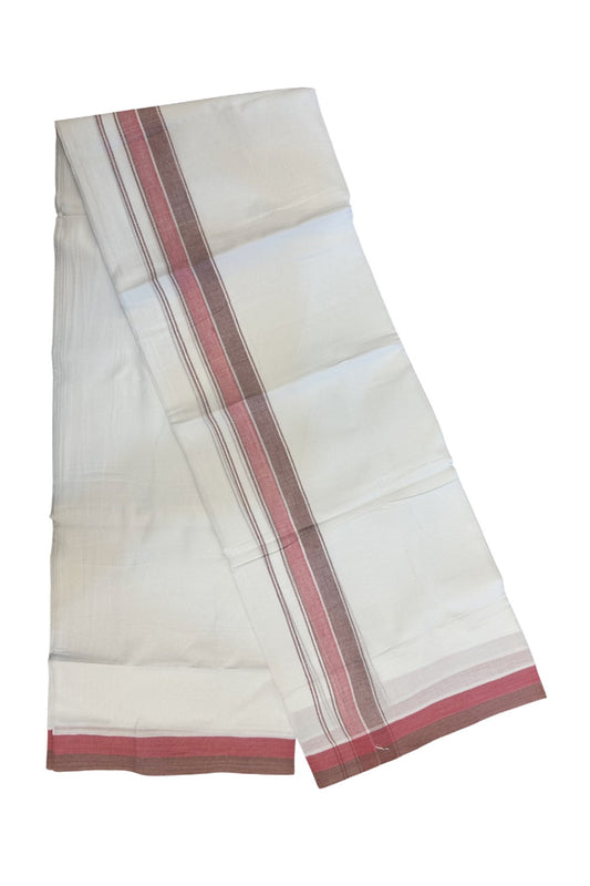 20% DISCOUNT!! Kaitharikada Balaramapuram 100% Cotton PURE WHITE Double Mundu/Dothi- 100x80 - 1.5 Inch Brown Stone & Majenta Shaded Striped Kara - 54KK5174THI