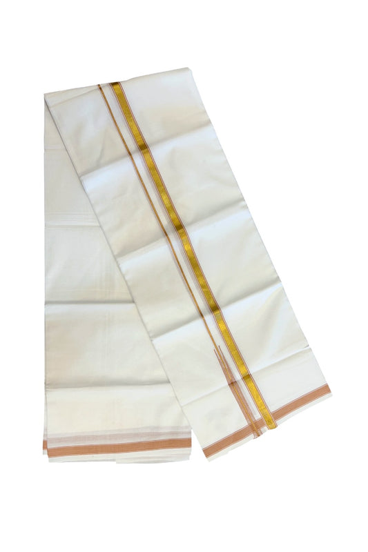 20% DISCOUNT!! KaithariKada Balaramapuram 100% Cotton PURE WHITE Double Mundu/Dhoti-100x80 - 0.5 inch Orange Brown Kasav Chutty Kara - 53KK5191CKS