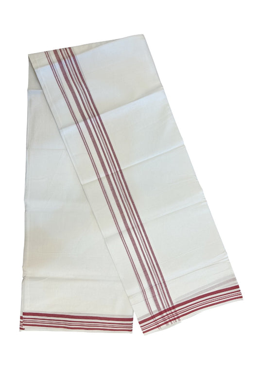 20% DISCOUNT!! Kaitharikada Balaramapuram 100% Cotton PURE WHITE Double Mundu/Dothi- 100x80 - 1.5 Inch Light Maroon Shaded Striped Kara - 56KK5174THI