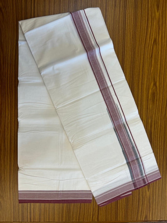 20% DISCOUNT!! Kaitharikada Balaramapuram 100% Cotton PURE WHITE Double Mundu/Dothi - 80X90 - 1.5 Inch Silver Kasav Maroon Stripes Chutty Kara 3.70 m (8 Muzham) - 64KK5115THI