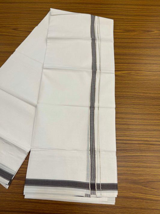 20% Discount!! Kaitharikada Balaramapuram 100% Pure Cotton Pure White Double Mundu/Dothi - 100x80 - 0.75 Inch Black & Silver shaded Stripes Puliyilakkara Chutty - 53KK5217 CKS