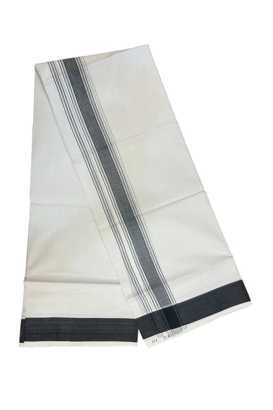 20% Discount!!! KaithariKada Balaramapuram 100% Cotton Double Pure White Mundu/Dhoti - 100X80 - 1.75 Inch Black Shaded Stripes kara 3.75 mtr (8 muzham) - 9KK5220 THI
