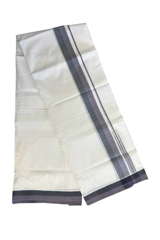 20% Discount!!! KaithariKada Balaramapuram Double PURE WHITE Mundu/Dhoti - 80X90 - 1.75 inch Black & Matte Purple shade puliyilakkara striped chutty - 4KK5146GUN