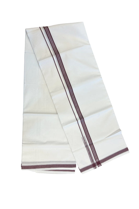 20% Discount!!! KaithariKada Balaramapuram 100% Cotton Double Pure White Mundu/Dhoti - 100X80 - 1.75 Inch Deep Brown Shaded Stripes kara 3.75 mtr (8 muzham) - 6KK5220 THI