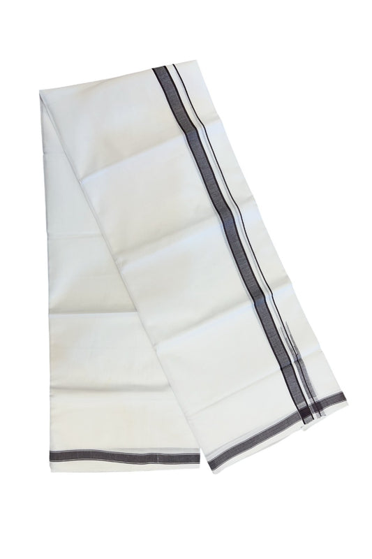 20% Discount!!! KaithariKada Balaramapuram 100% Cotton Double Pure White Mundu/Dhoti - 100X80 - 1.5 Inch Black Shaded Stripes kara 3.75 mtr (8 muzham) - 7KK5220 THI