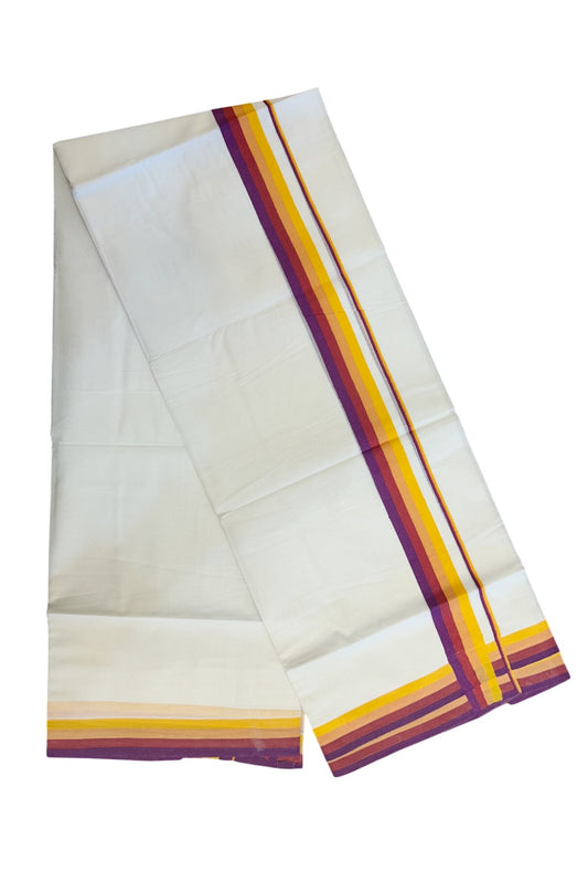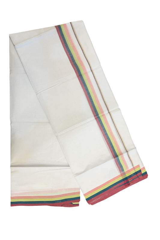 21% Discount ! KaithariKada Balaramapuram 100% Cotton Pure white Double Mundu/Dhoti - 100X90 - 1.25 inch Multi Colour kara - 2KK5202PMC