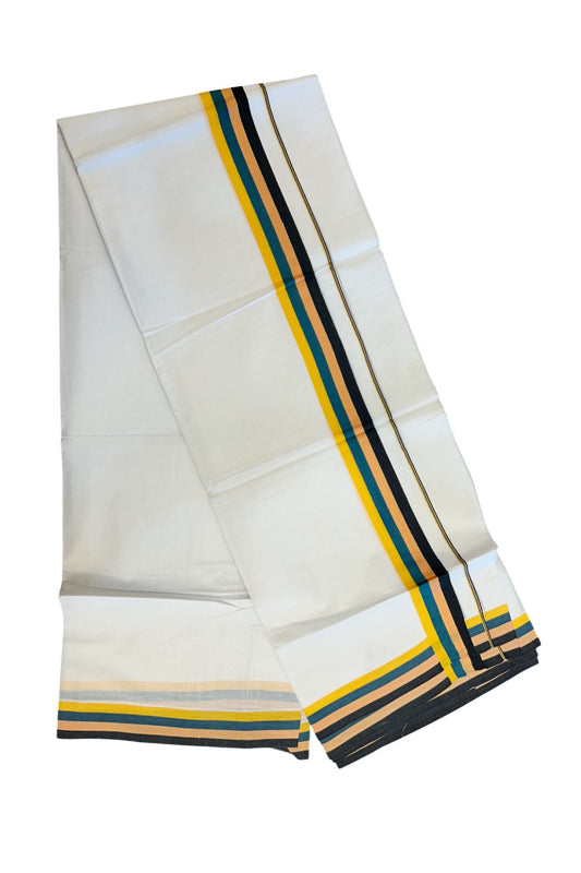 21% Discount ! KaithariKada Balaramapuram 100% Cotton Pure white Double Mundu/Dhoti - 100X90 - 1.25 inch Multi Colour kara - 3KK5202PMC