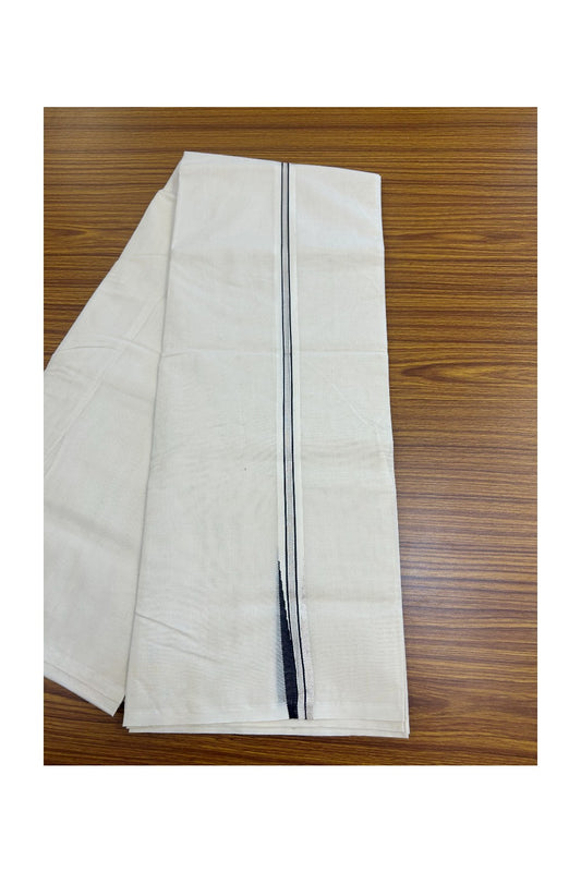 21% Discount! KaithariKada Balaramapuram 100% Cotton Double Off white (Unbleached) Mundu/Dhoti-100X100- 4 Line Black kara - 7KK72RAM