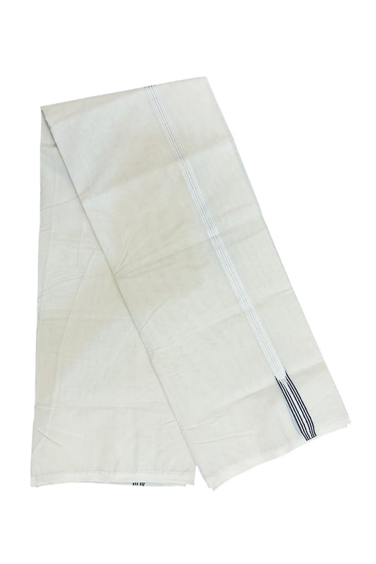 21% Discount! KaithariKada Balaramapuram 100% Cotton Off white (Unbleached) Double Mundu/Dhoti - 100x80 - 7.25 inch Blue Stripes Kara 4 mtr (8.5 muzham) - 33 KK5284 PMC