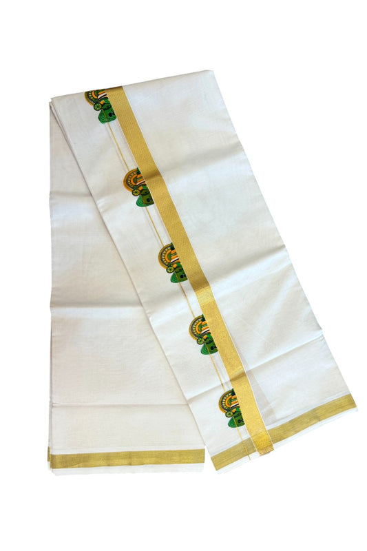 22% Discount!! KaithariKada Balaramapuram 100% Cotton Double Off White- (Ubleached) Mundu/Dhoti - 80x90 - 1 inch Gold Kasav with Kathakali Printed Design Kara - 33KK5219 GAN