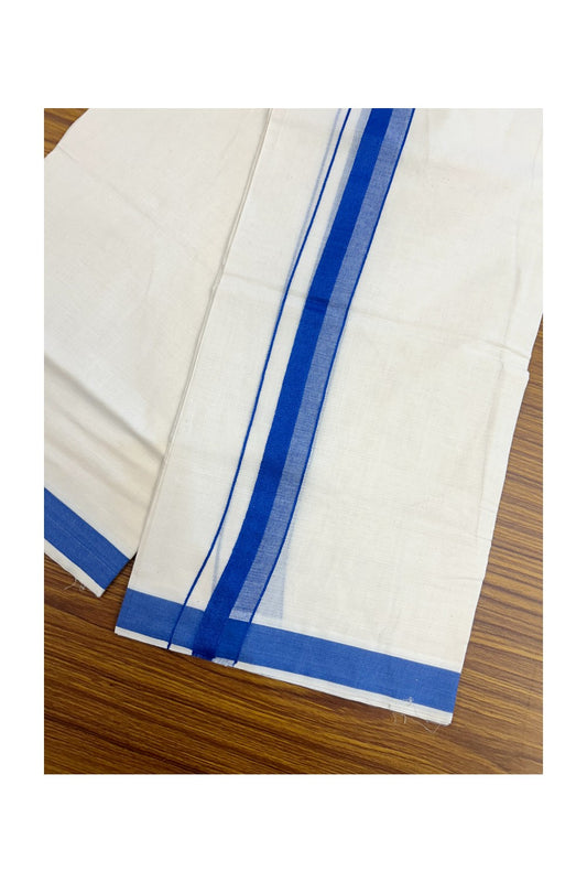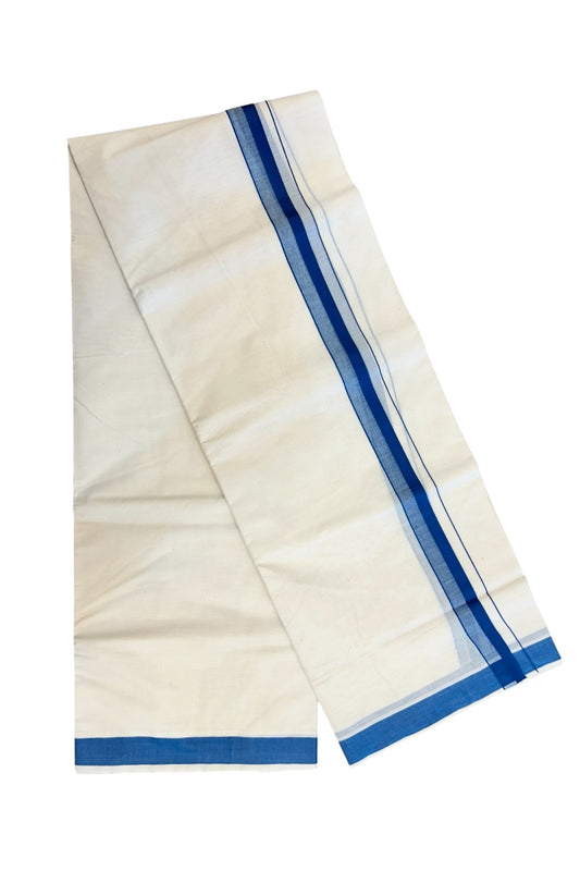 24% Discount ! KaithariKada Balaramapuram 100% Cotton Double Off White - (Unbleached) - Mundu / Dhoti- 100x80 - 1.5 inch Blue Kara - 2KK5214 MC