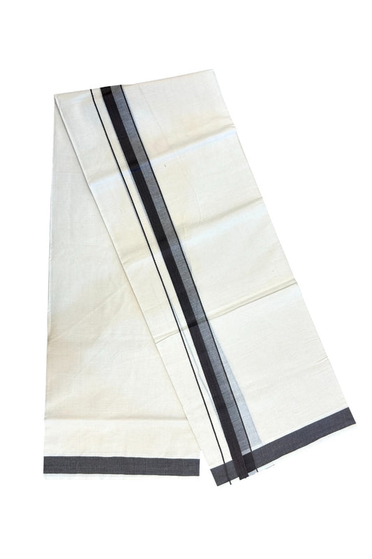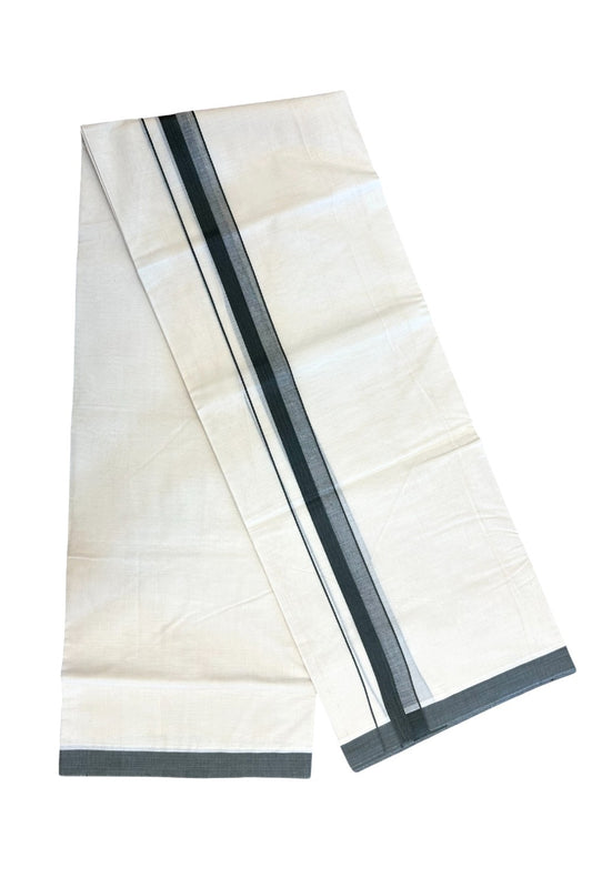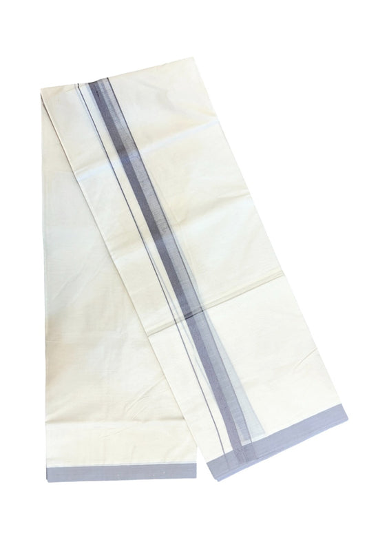 24% Discount ! KaithariKada Balaramapuram 100% Cotton Double Off White - (Unbleached) - Mundu / Dhoti- 100x80 - 1.5 inch Ash Grey Kara - 9KK5214 MC