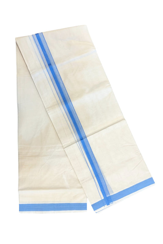24% Discount ! KaithariKada Balaramapuram 100% Cotton Double Off White - (Unbleached) - Mundu / Dhoti- 100x80 - 1.5 inch Sky Blue Kara - 3KK5214 MC