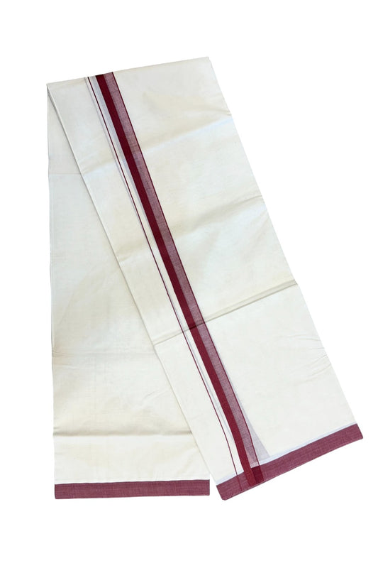 24% Discount ! KaithariKada Balaramapuram 100% Cotton Double Off White - (Unbleached) - Mundu / Dhoti- 100x80 - 1.5 inch Maroon Kara - 4KK5214 MC