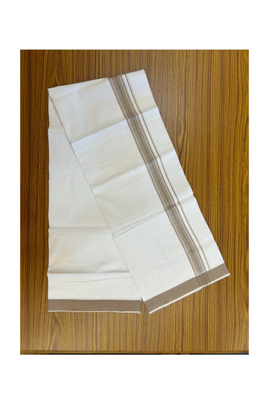 24% Discount !! KaithariKada Balaramapuram 100% Cotton Pure white Single Mundu/Dhoti - Twisted 60s Thread- 1.25 inch Silver Kasav Pastel Brown & Green Shaded Striped Kara (2 meter / 4 muzham) - 11KK5241 GL