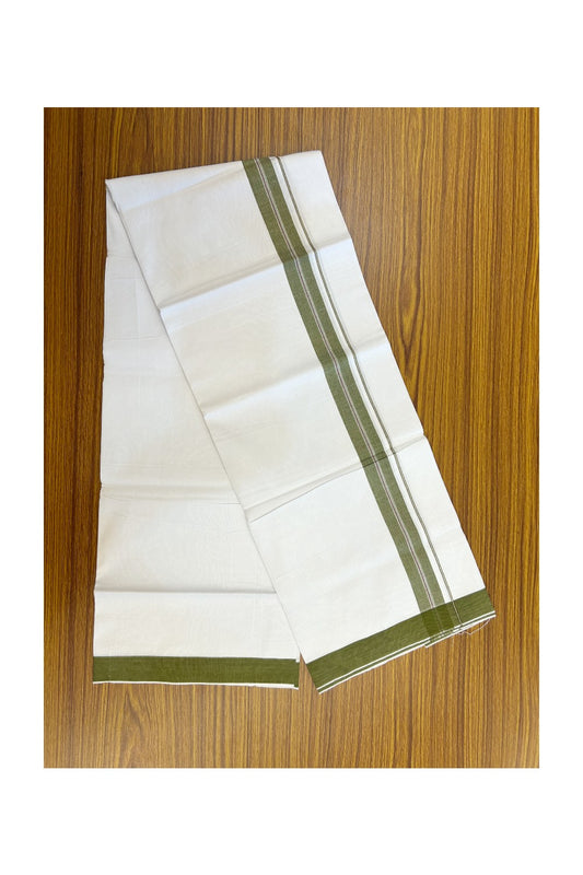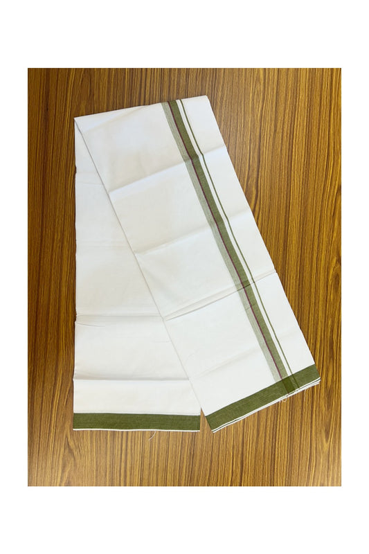 24% Discount !! KaithariKada Balaramapuram 100% Cotton Pure white Single Mundu/Dhoti - Twisted 60s Thread- 1 inch Olive Green & Purple Shaded Kara (2 meter / 4 muzham) - 7KK5241 GL