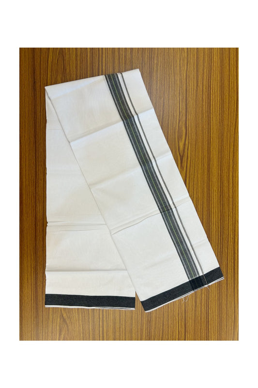 24% Discount !! KaithariKada Balaramapuram 100% Cotton Pure white Single Mundu/Dhoti - Twisted 60s Thread- 1.5 inch Silver Kasav Black & Green Shaded Striped Kara (2 meter / 4 muzham) - 8KK5241 GL