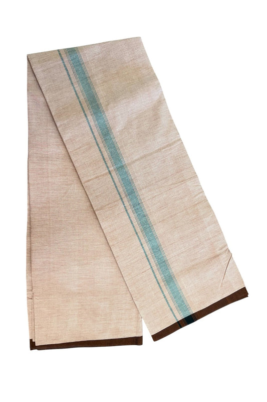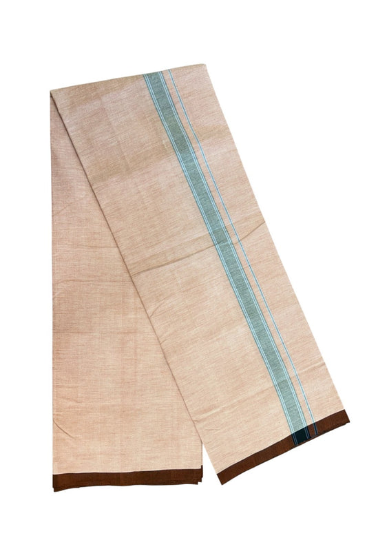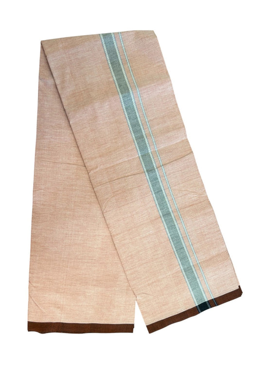 25% Discount ! KaithariKada 100% Cotton Balaramapuram Handloom Single Mundu/Dhoti - Dark Peach Shaded Colour Body & 1.25 inch Black Blue Striped Kara (2 meter / 4 muzham) - 2KK5225KAI