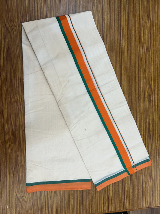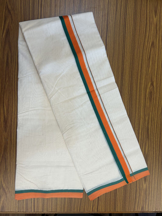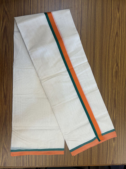 Bjp Veshti - 24% Discount! KaithariKada 100% Cotton Off White Double - (Unbleached) Mundu/Dhoti - 100X100 - 0.75 inch Orange & Green Kara - 3KK5150ASH