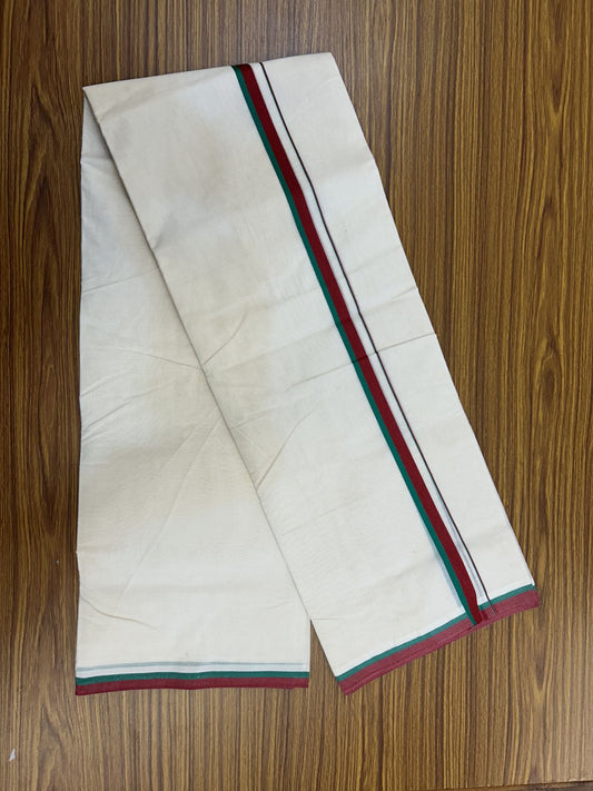 Sdpi Veshti - 20% Discount ! KaithariKada 100% Cotton off white Double - (Unbleached) Mundu/Dhoti - 100X80 - 1.5 cm Maroon & Green Kara - 19 KK5325 ASH