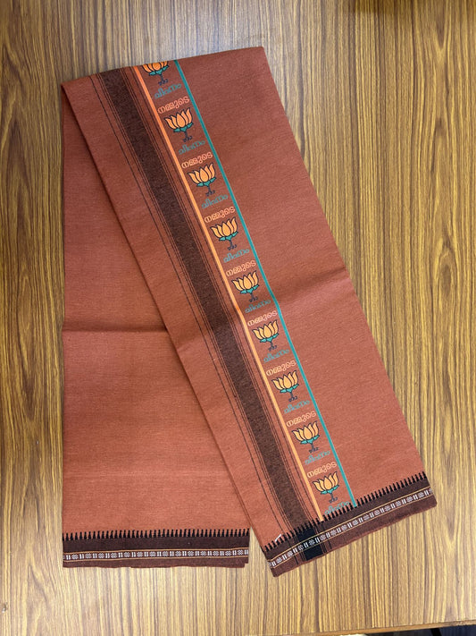 Bjp Veshti - Kaitharikada - Single Kaily / Lungi - Polyster + Cotton - 20s twisted - 2 inch Bjp Lotus Printed Kuppadam Border with Kavi colour body (2 meter / 4 muzham) - 1 KK5333 GAN