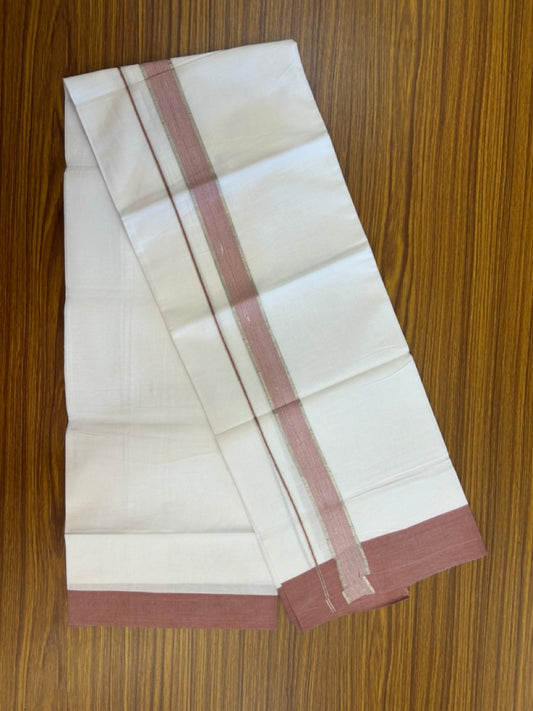 Kaitharikada - Balaramapuram 100% Pure Cotton South Indian Kids Pure White Mundu/Dhoti - 100x80 - 1.25 inch Silver Kasav & Dusty Rose Shaded Kara 1.80 mtr (4 Muzham) - 12 KK5287 PMC
