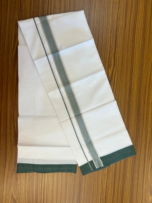 Kaitharikada - Balaramapuram 100% Pure Cotton South Indian Kids Pure White Mundu/Dhoti - 100x80 - 1.25 inch Silver Kasav & Green Shaded Kara 1.80 mtr (4 Muzham) - 11 KK5287 PMC