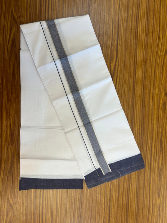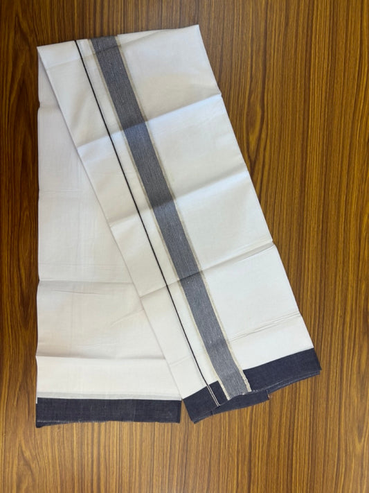 Kaitharikada - Balaramapuram 100% Pure Cotton South Indian Kids Pure White Mundu/Dhoti - 100x80 - 1.25 inch Silver Kasav & Navy Blue Shaded Kara 1.80 mtr (4 Muzham) - 10 KK5287 PMC