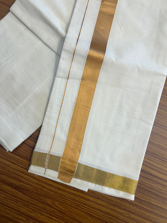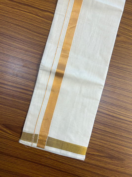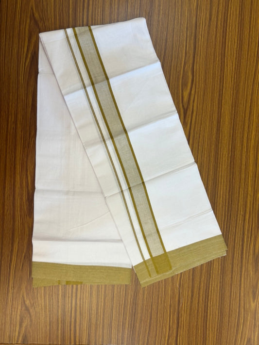 Kaitharikada - Balaramapuram 100% Pure Cotton South Indian Kids Pure White Mundu/Dhoti - 100x80 - 1.5 inch Yellowish Brown Shaded Kara 1.80 mtr (4 Muzham) - 9 KK5287 PMC