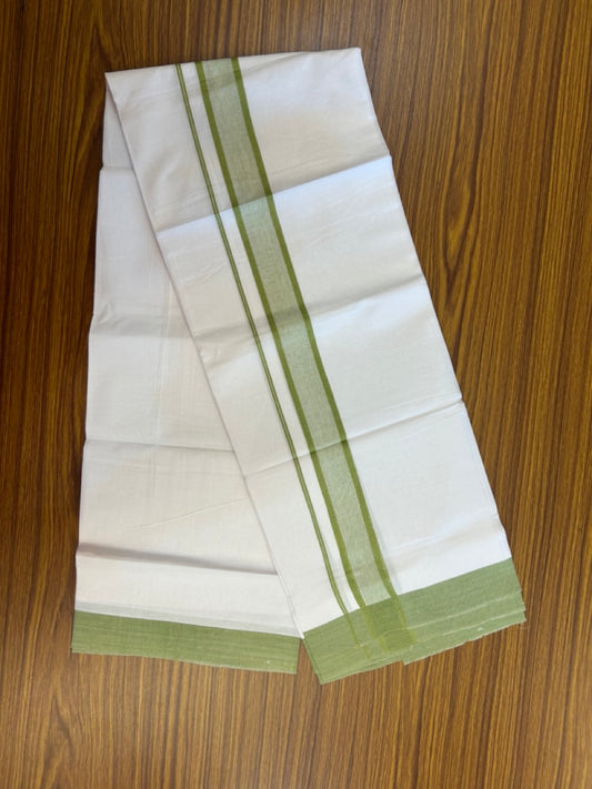 Kaitharikada - Balaramapuram 100% Pure Cotton South Indian Kids Pure White Mundu/Dhoti - 100x80 - 1.5 inch Light Green Shaded Kara 1.80 mtr (4 Muzham) - 7 KK5287 PMC