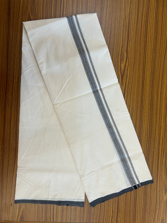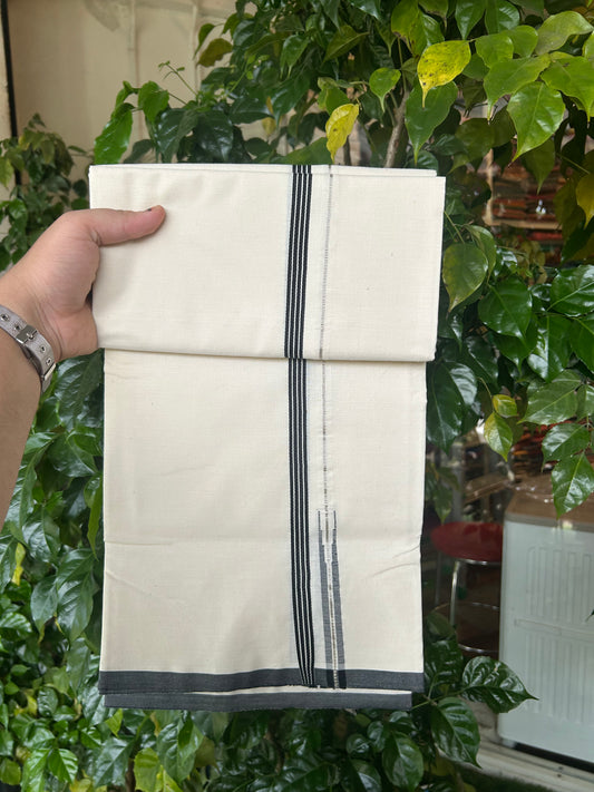 20% Discount KaithariKada Balaramapuram 100% Cotton Double Off white - (Unbleached) - Mundu/Dhoti - 100x80 - 1 inch Black Kara - 3.80 mtr (8 Muzham) - 14 KK5346 ASH