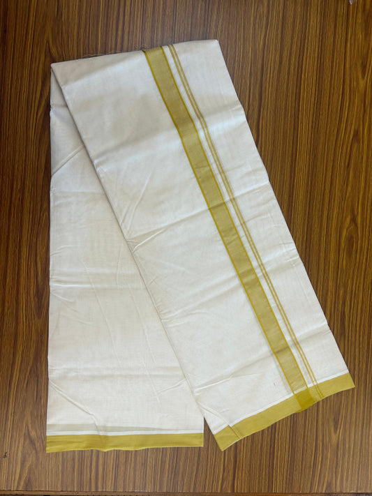 20% Discount KaithariKada Balaramapuram 100% Cotton Double Off white - (Unbleached) - Mundu/Dhoti - 100x80 - 1.5 inch Mustard Yellow Striped Kara - 3.90 mtr (8 Muzham) - 15 KK5346 ASH