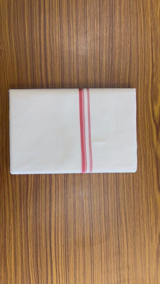 KaithariKada Balaramapuram COTTON SINGLE PURE WHITE VELCRO Mundu/Dhoti - 1.75inch Brick Red kara (2 metre / 4 muzham) - 6KK485SRI