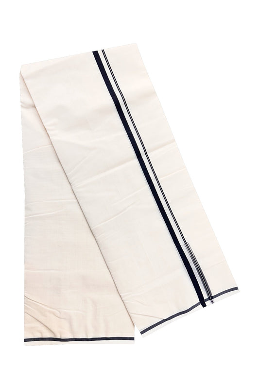 20% Discount ! Kaitharikada Balaramapuram 100% Pure Cotton Double Pure White Mundu/Dhoti - 100x80 - 1.5 inch Navy Blue shaded striped chutty 3.90 mtr (8.5 muzham) - 77 KK5287 PMC