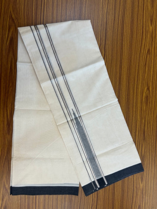 20% Discount! KaithariKada Balaramapuram 100% Cotton Double off white (Unbleached) Mundu/Dhoti - 100X80 - 1.5 inch Silver kasavu & Black striped chutty - 4 mtr (8.5 Muzham) - 43 KK5283 PMC