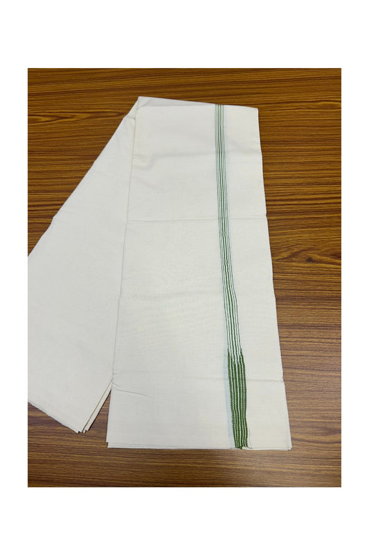 20% Discount!!! KaithariKada Balaramapuram Double PURE WHITE Mundu/Dhoti - (80s) - 1.25 inch puliyilakkara Dark Sage Green Shaded Striped chutty Kara - 3.82 mtr ( 8 muzham)- 9KK5239 GAN