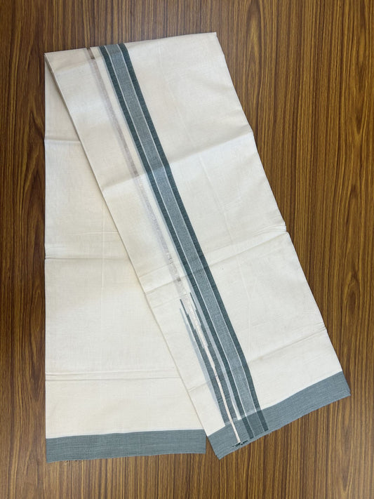 20% Discount ! Kaitharikada Balaramapuram 100% Pure Cotton Double Off white (Unbleached) Mundu/Dhoti - 100x80 - 1.25 inch Silver Kasav & Green Shaded Stripes Chutty Kara 3.90 mtr (8 muzham) - 31 KK5318 PMC