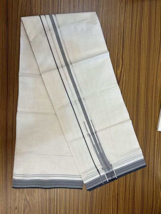 20% Discount ! KaithariKada Balaramapuram 100% Cotton Double Off White - (Unbleached) - Mundu / Dhoti- 100x80 - 1.25 inch Puliyilakkara Silver Kasav & Black shaded striped chutty Kara - 4 mtr (8.5 Muzham) - 38 KK5340 VIN