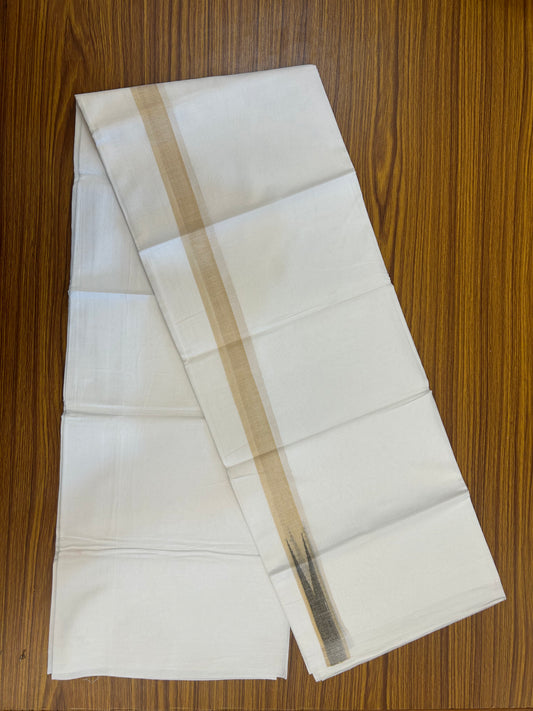 20% Discount ! Kaitharikada Balaramapuram 100% Cotton Pure White Double Mundu/Dothi - 100x80 - 1 inch Puliyilakkara Gold Kasav & Peach Brown Chutty Kara 3.90 mtr (8 muzham) - 2 KK5344 VAS