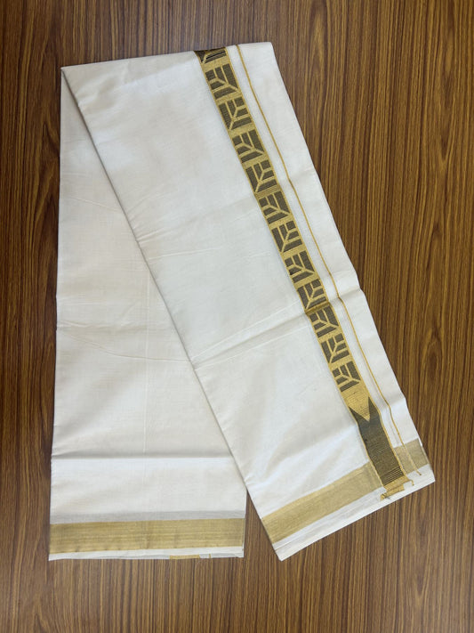 20% Discount! KaithariKada Balaramapuram Double Off White - (Unbleached) Mund/Dhoti - Cotton mix - 100X80- 1.5 inch Kasav Dark Green Jacquard design chutty Kara 3.90 mtr (8 Muzham) - 7 KK5313 PMC