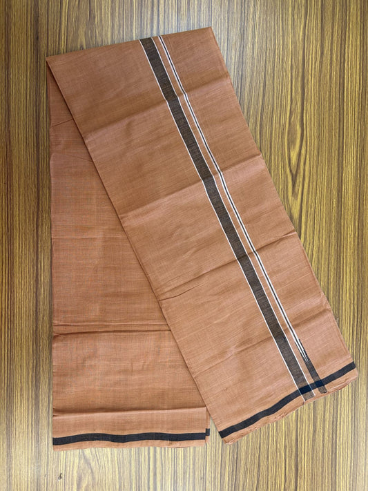 Kerala Handloom Single Hallmarked - 10% Discount !! KaithariKada 100% Pure Cotton - Mundu/Dhoti 2 cm White Shaded Striped Kara with Kavi colour Body - (2 meter / 4 muzham) - 27 KK8048 ELA