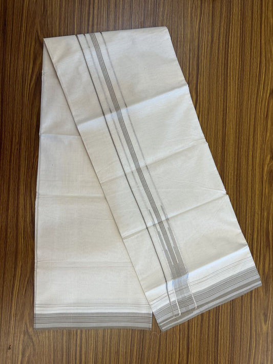 20% Discount ! KaithariKada Balaramapuram 100% Cotton Double Off White - (Unbleached) - Mundu / Dhoti- 100x80 - 1.25 inch Puliyilakkara Silver Kasav & Light Brown shaded striped chutty Kara - 4 mtr (8.5 Muzham) - 33 KK5340 VIN