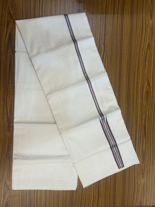 20% Discount!! KaithariKada Balaramapuram Pure Cotton Double Off White - (Unbleached) - Mundu/Dhoti - 100x80 - 1 inch Puliyilakkara Silver Kasav & Burnt Maroon Stripes One Side Chutty Kara 4 mtr (8.5 muzham) - 35 KK5311 VAS