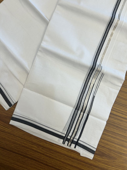 20% Discount! KaithariKada Balaramapuram 100% Cotton Double Pure white Mundu/Dhoti- 100x80 - 1 cm Silver Black Striped One Side Double Chutty kara - 3.75 mtr ( 8 muzham) - 1 KK5315 VAS